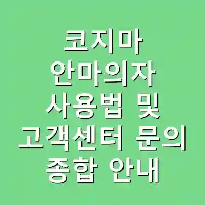 코지마 안마의자의 사용자 설명서 다운로드 방법과 기본 사용법, 고객센터 문의 방법을 정리했습니다. 이를 통해 독자는 효과적인 마사지 경험과 문제 해결 방법을 배울 수 있습니다. 안마의자를 올바르게 활용하여 건강한 생활을 영위하시길 바랍니다.